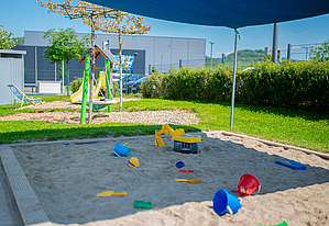 In der Betriebsverfassung, den "AU-Spielregeln", ist die Vereinbarkeit von Familie und Beruf fest verankert, da war der Aufbau der firmeneigenen Kinderbetreuung nur eine Frage der Zeit. Im selben Gebäude untergebracht, mit eigener Bobbycar-Rennstrecke und Spielplatz, sind die Kinder fester Bestandteil von AU und ein wunderbarer Teil des Firmenalltags.